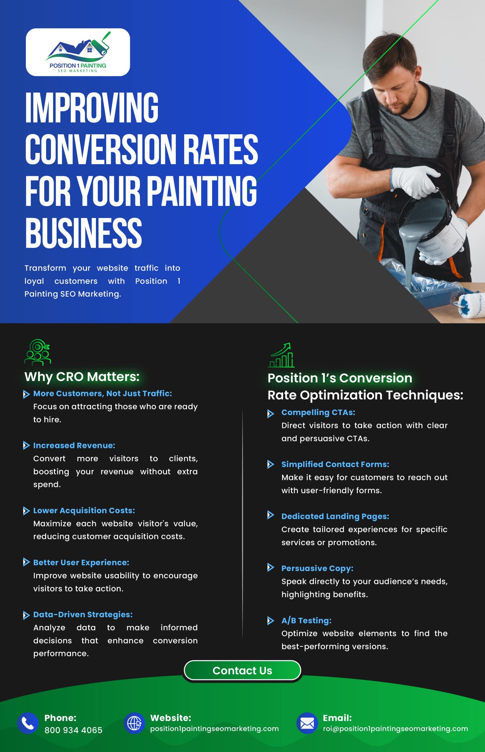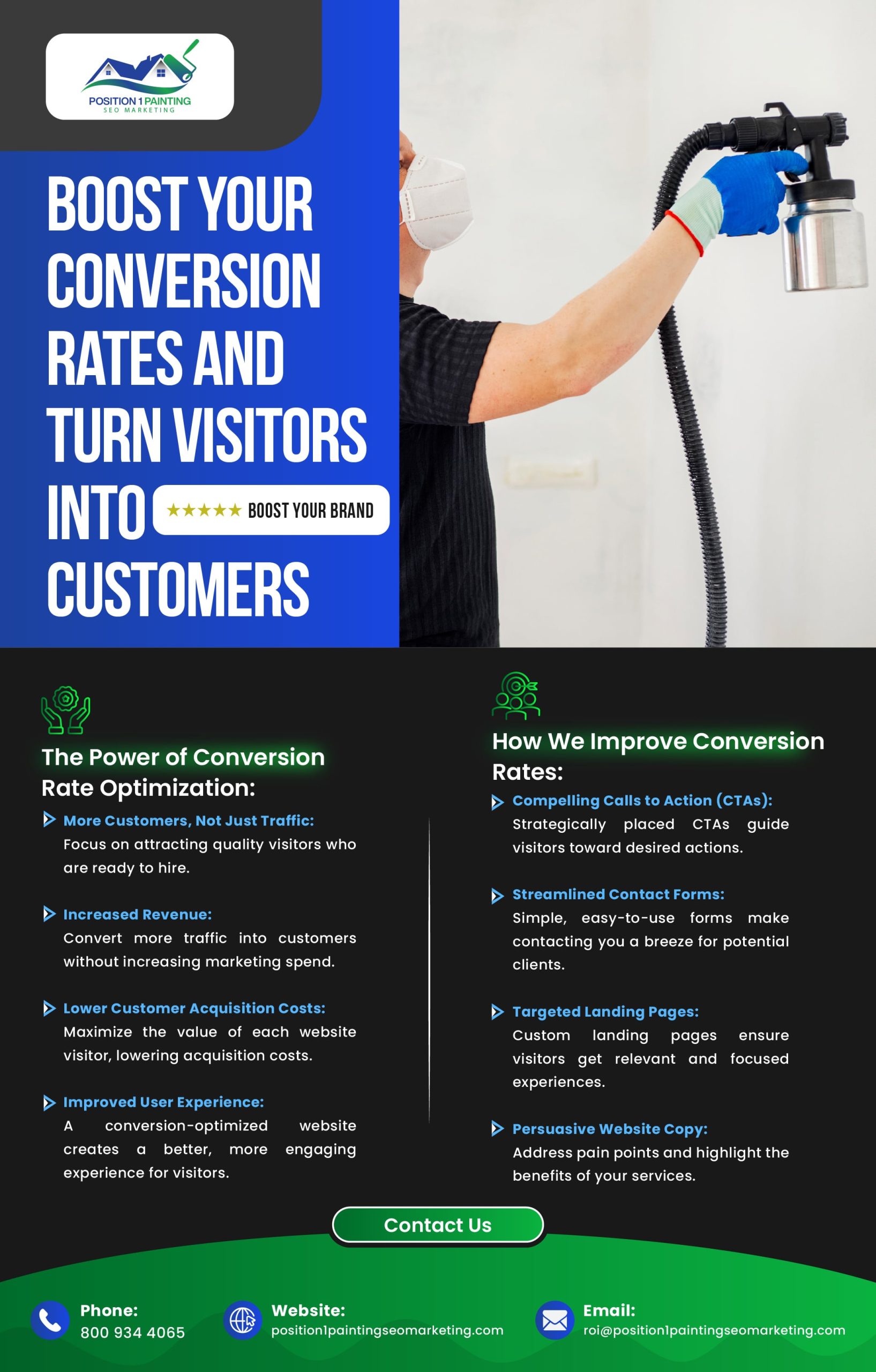 In the painting industry, website traffic is just the beginning. The real goal is to convert those visitors into leads and ultimately, loyal customers. Position 1 Painting SEO Marketing specializes in conversion rate optimization (CRO), the art and science of turning website clicks into booked jobs.