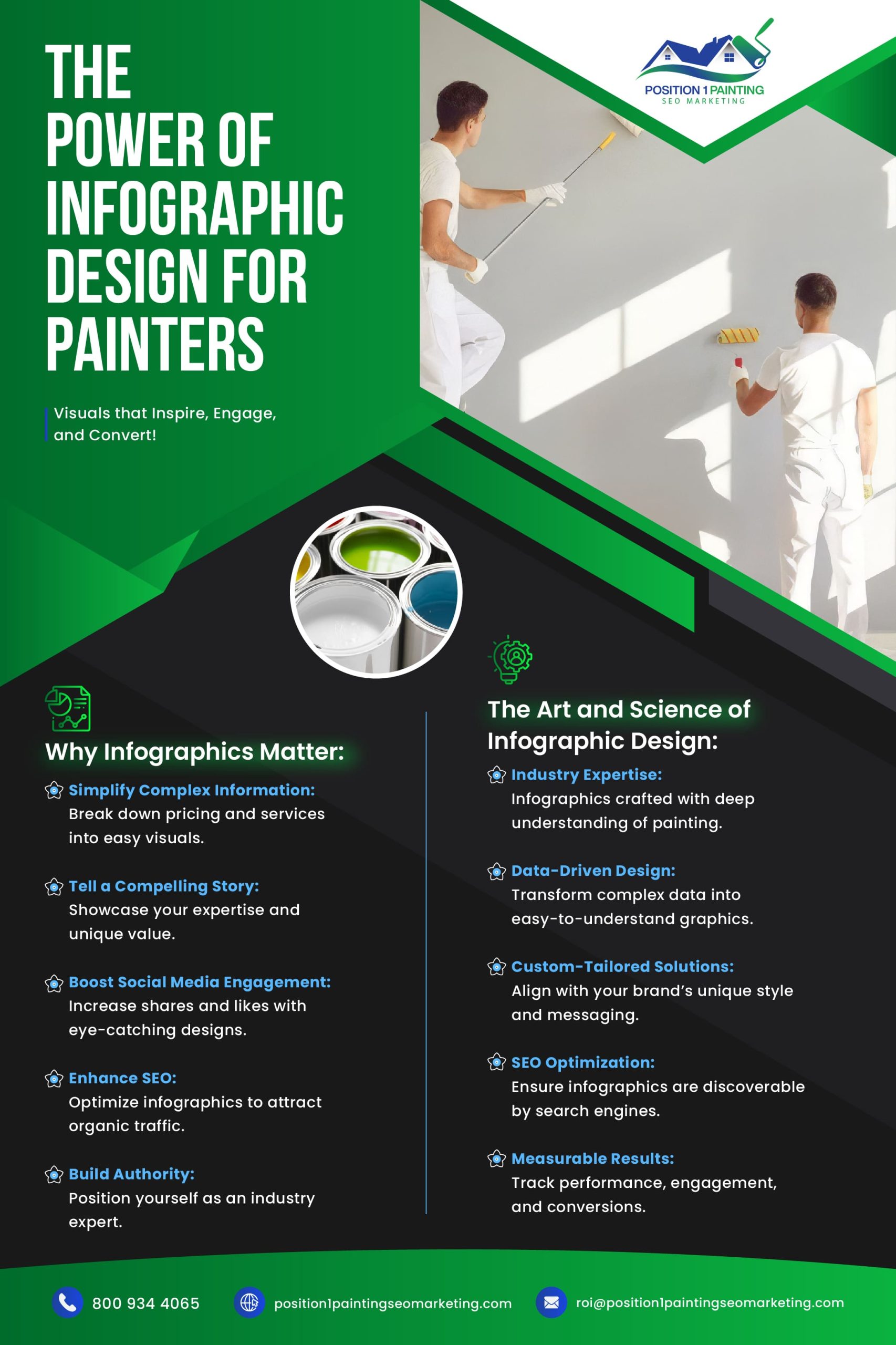 In the painting industry, a picture truly is worth a thousand words. But in today’s digital landscape, it takes more than just a pretty image to capture attention and drive results. Position 1 Painting SEO Marketing understands the power of visual communication, and we specialize in creating infographics that do more than just inform – they inspire, engage, and convert.