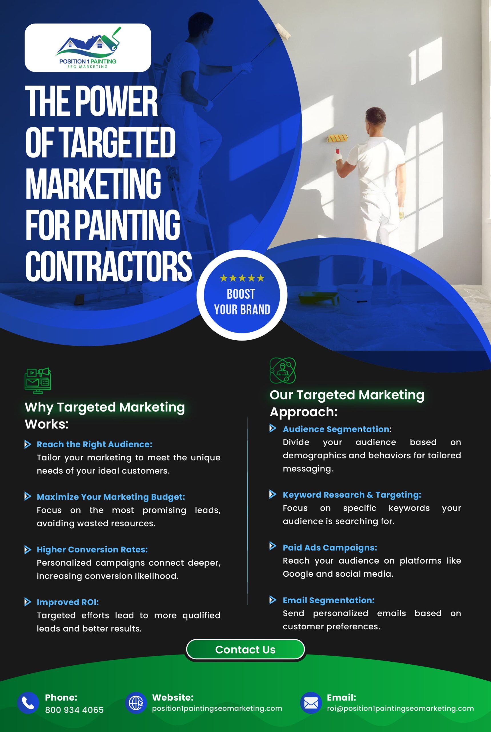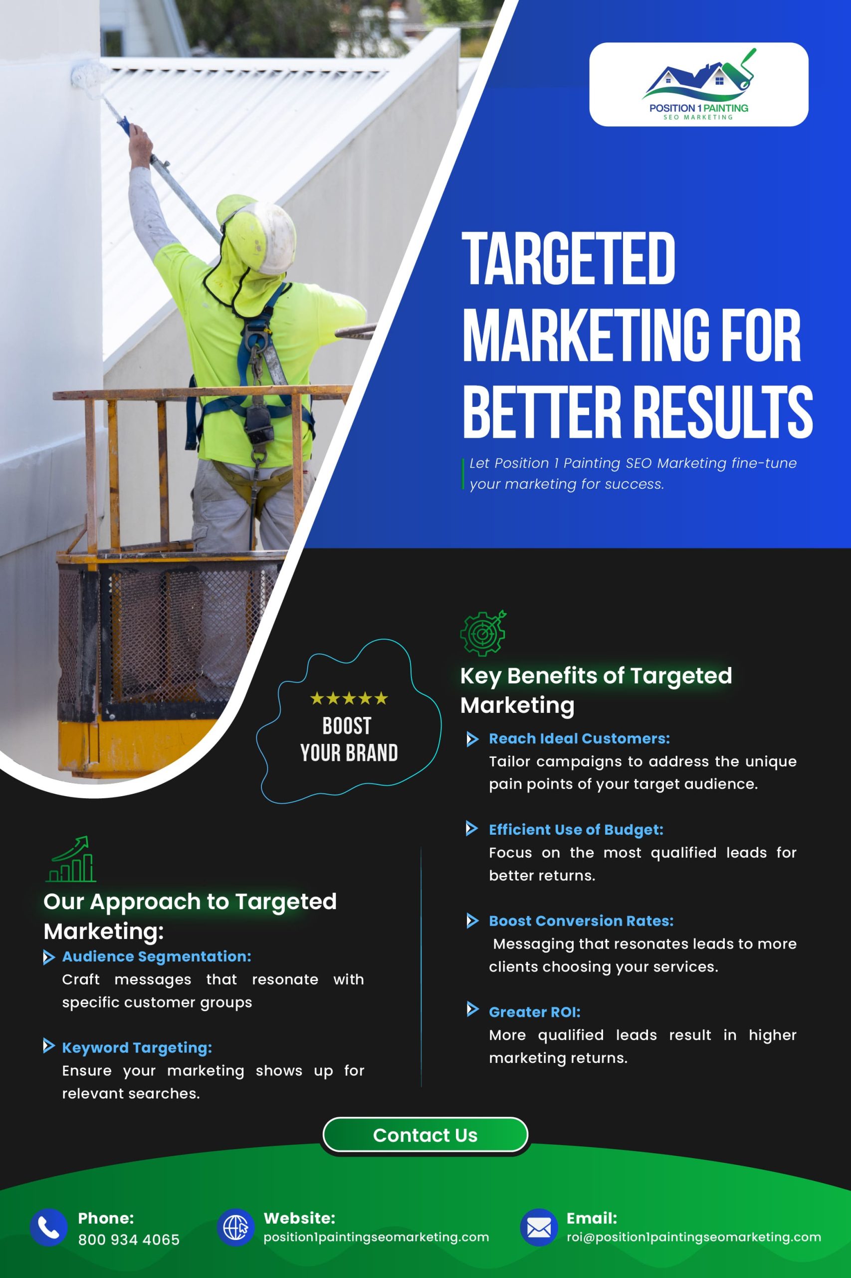 Don’t waste your marketing dollars on broad, generic campaigns. Partner with Position 1 Painting SEO Marketing and let us help you hit your marketing targets with precision, attracting the right customers and driving revenue growth.